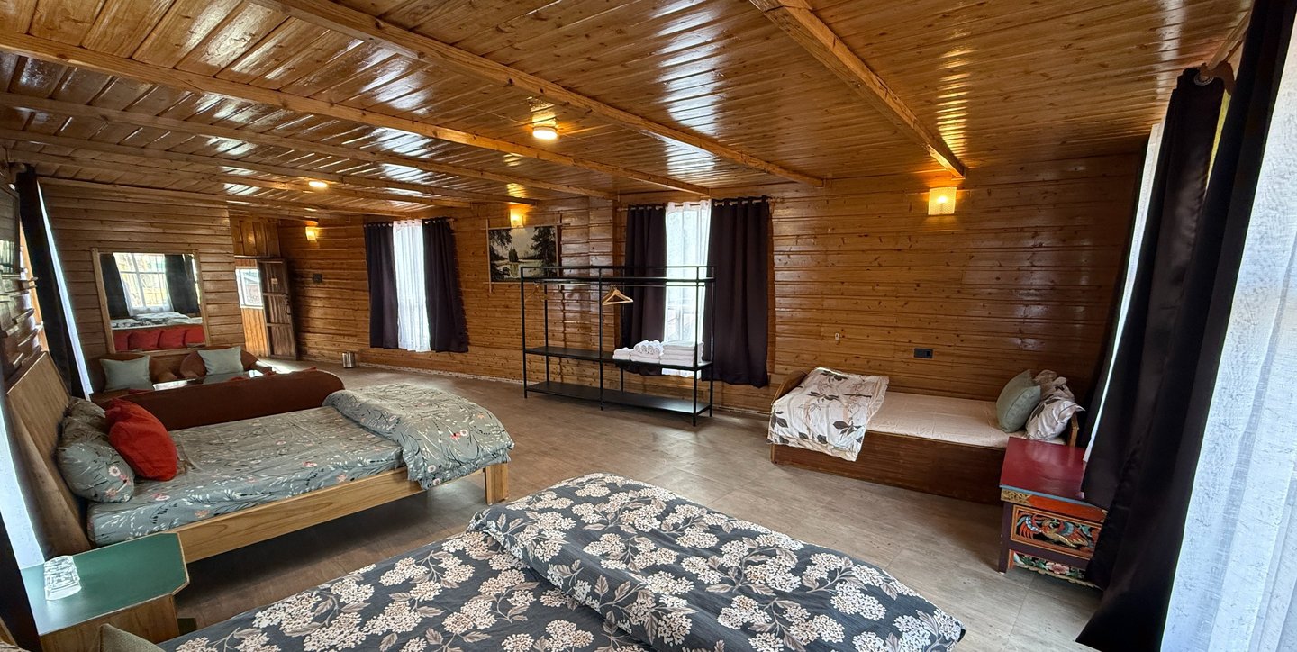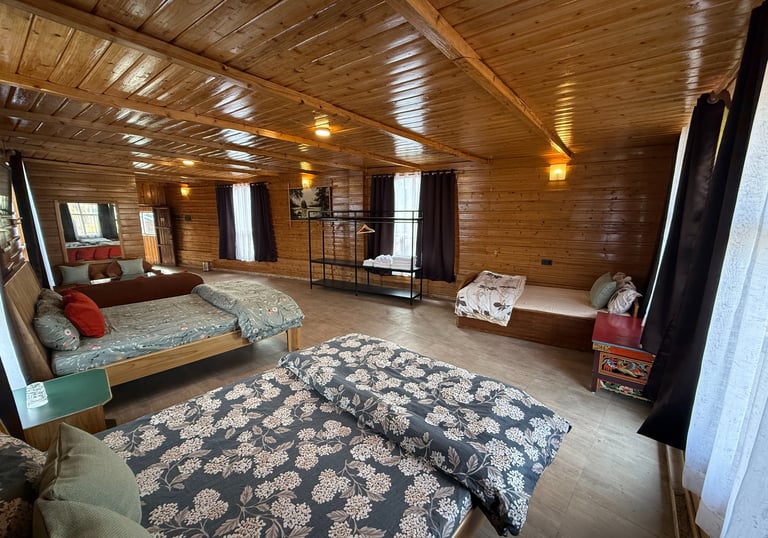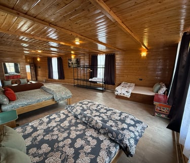 Designed for group stays, our larger rooms offer three beds with generous extra space. They can comfortably host 10 to 15 guests. Extra beds are available on request at an additional charge.